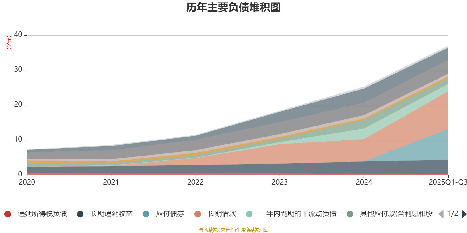 负债重大变化方面,截至2025年三季度末,公司应付债券占公司总资产的9.94%,上年末为0;长期借款较上年末增加69.16%,占公司总资产比重上升3.39个百分点;一年内到期的非流动负债较上年末减少29.73%,占公司总资产比重下降1.72个百分点;其他应付款(含利息和股利)较上年末减少38.83%,占公司总资产比重下降1.64个百分点。
