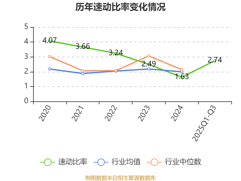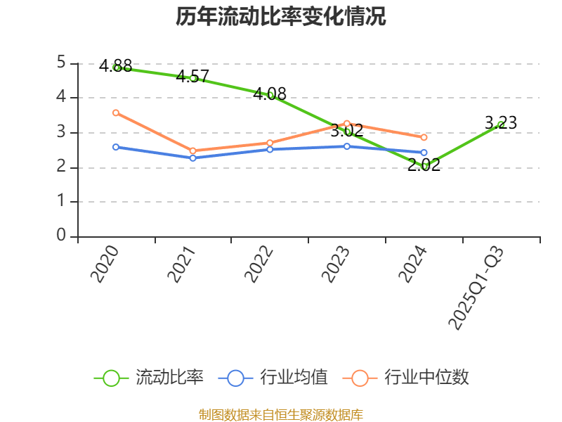 2025年前三季度,公司流动比率为3.23,速动比率为2.74。