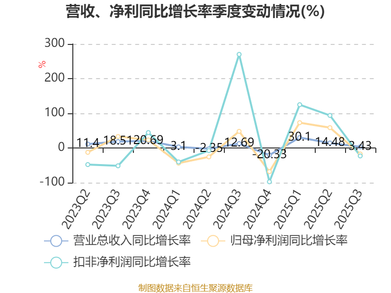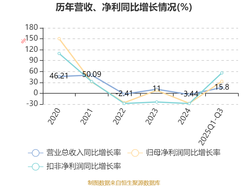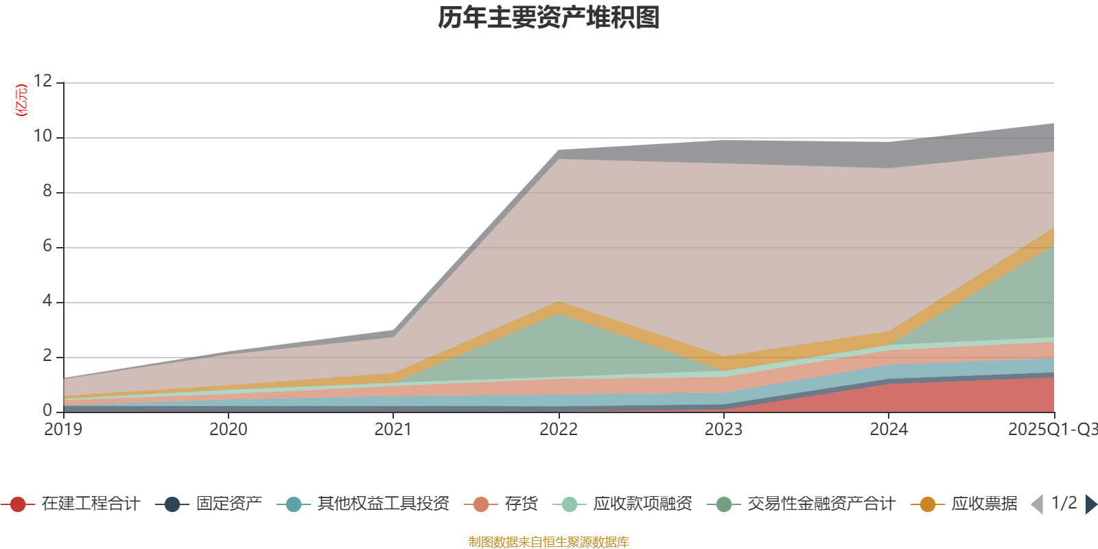 资产重大变化方面,截至2025年三季度末,公司货币资金较上年末减少53.31%,占公司总资产比重下降34.06个百分点;交易性金融资产合计占公司总资产的32.07%,上年末为0;在建工程合计较上年末增加23.54%,占公司总资产比重上升1.59个百分点;应收票据及应收账款较上年末增加25.7%,占公司总资产比重上升0.89个百分点。
