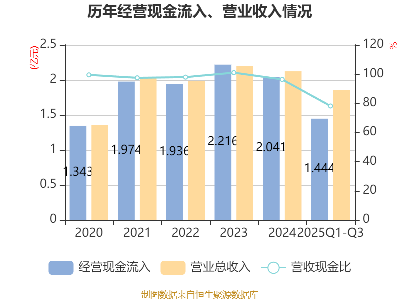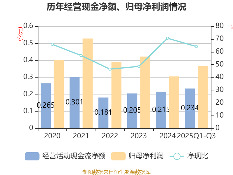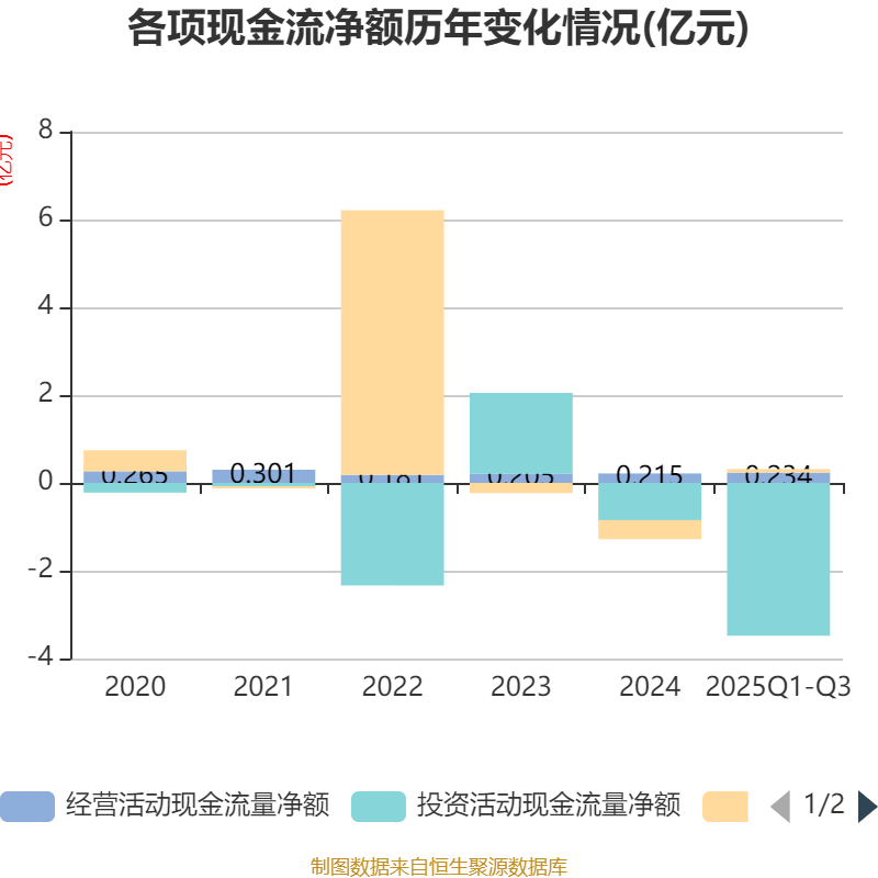 2025年前三季度,公司经营活动现金流净额为2341.32万元,同比增长66.14%;筹资活动现金流净额807.58万元,同比增加5074.55万元;投资活动现金流净额-3.48亿元,上年同期为-5.08亿元。