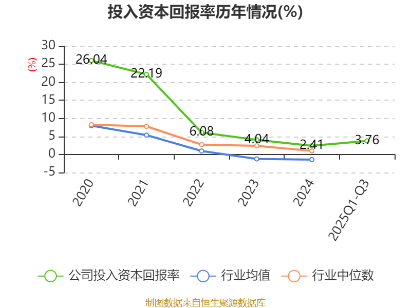 盈利能力方面, 2025年前三季度公司加权平均净资产收益率为3.87%,同比上升1.05个百分点。公司2025年前三季度投入资本回报率为3.76%,较上年同期上升1.34个百分点。