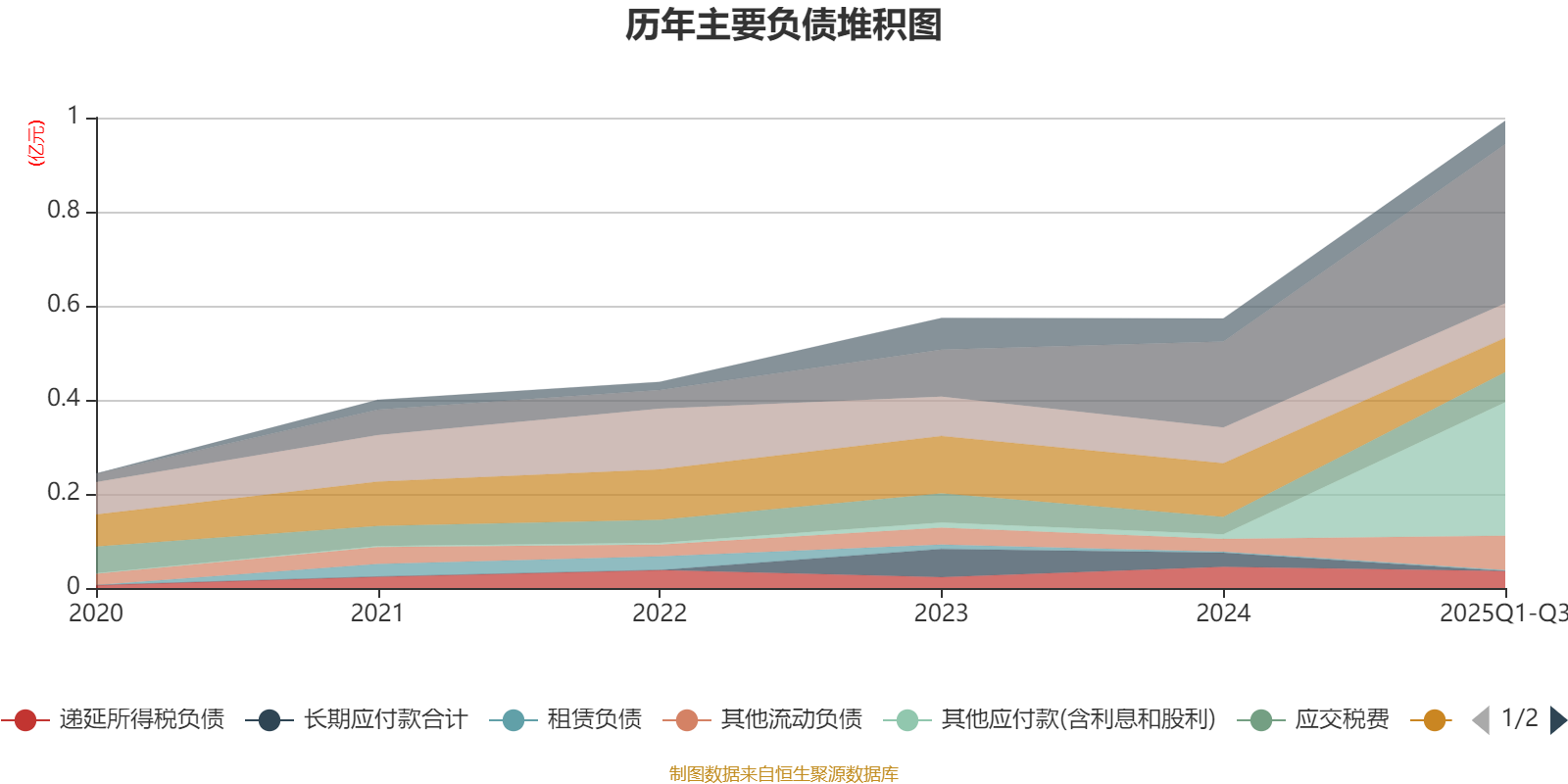 负债重大变化方面,截至2025年三季度末,公司其他应付款(含利息和股利)较上年末增加2666.28%,占公司总资产比重上升2.59个百分点;应付票据及应付账款较上年末增加85.1%,占公司总资产比重上升1.36个百分点;应付职工薪酬较上年末减少36.03%,占公司总资产比重下降0.47个百分点;其他流动负债较上年末增加167.72%,占公司总资产比重上升0.42个百分点。