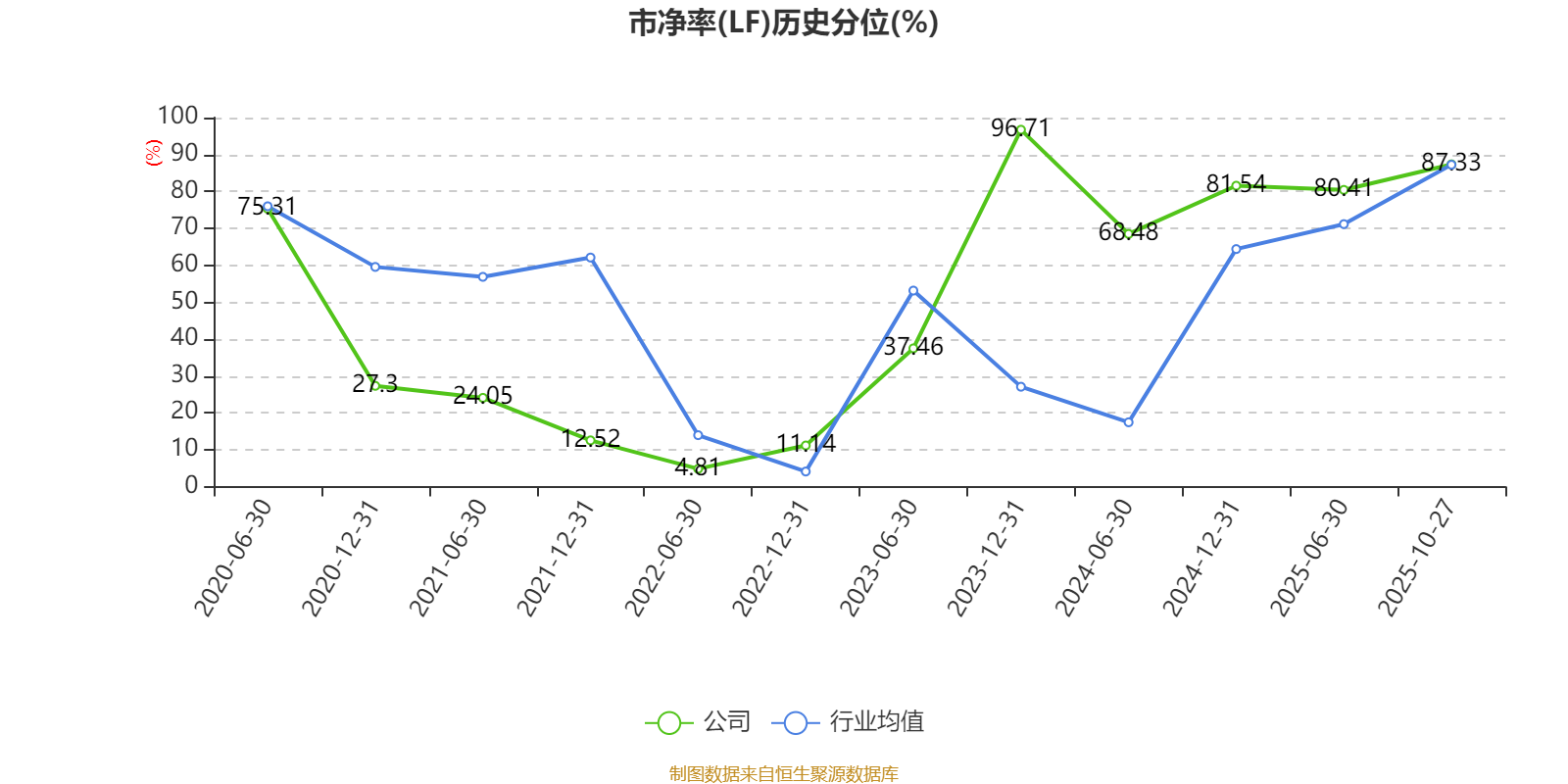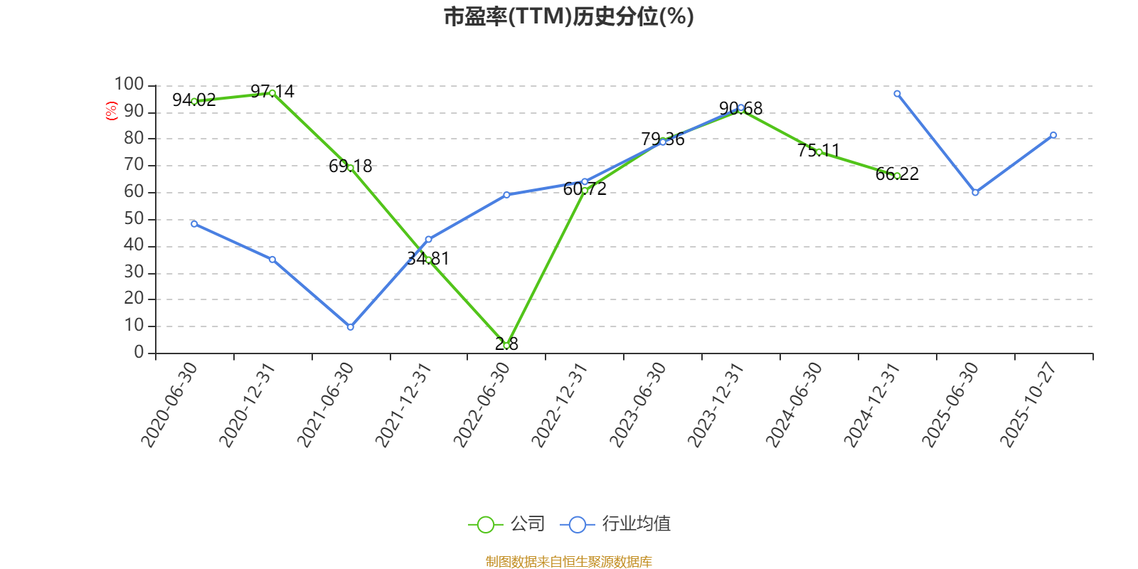 市盈率、市净率为负时,不显示当期分位数,会导致折线图中断。