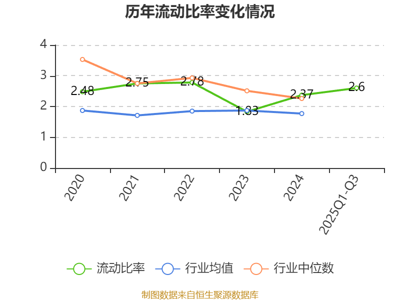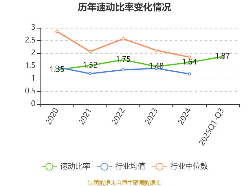 2025年前三季度,公司流动比率为2.6,速动比率为1.87。