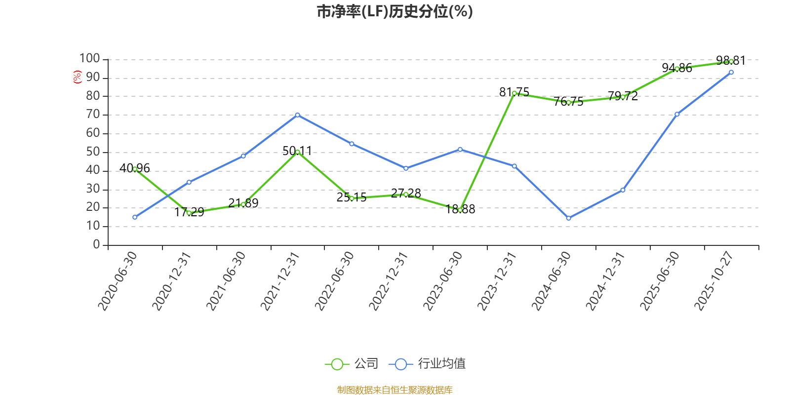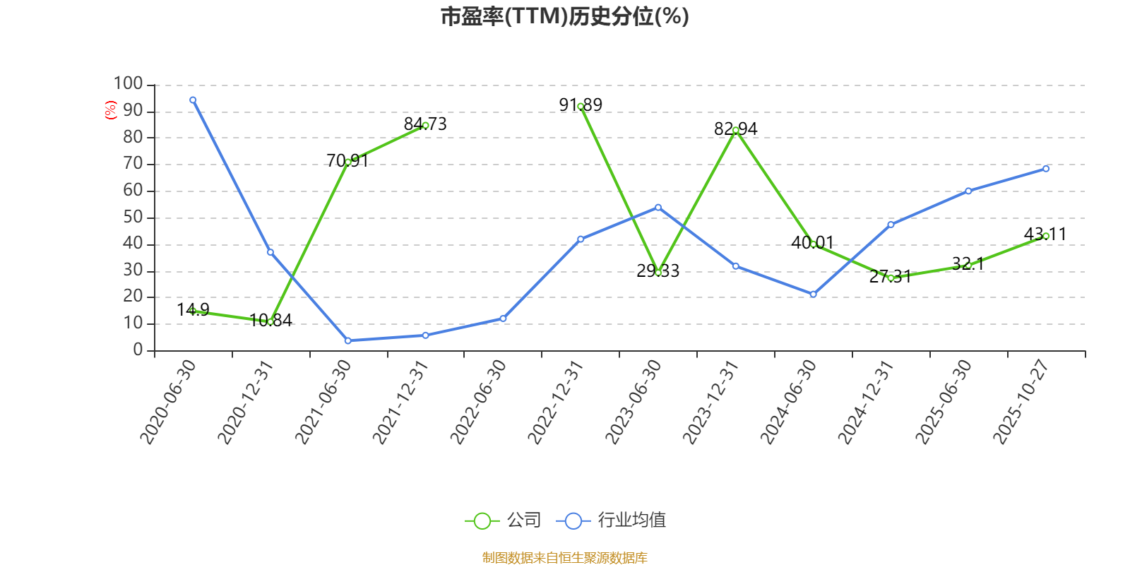 市盈率、市净率为负时,不显示当期分位数,会导致折线图中断。