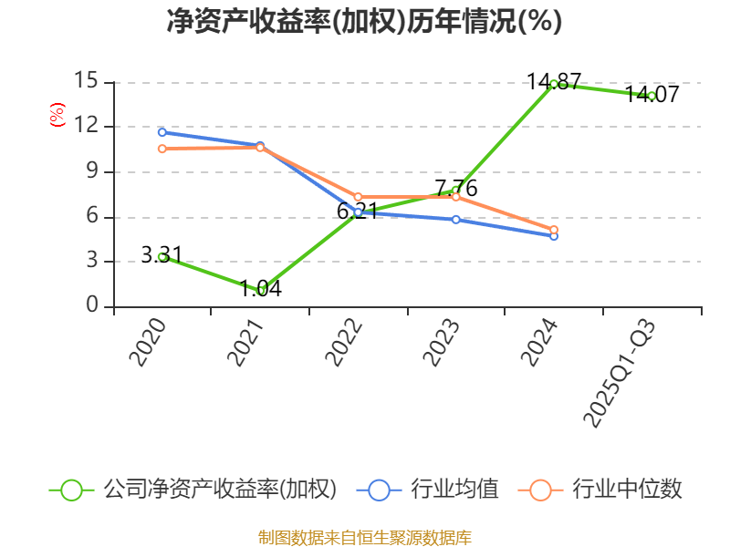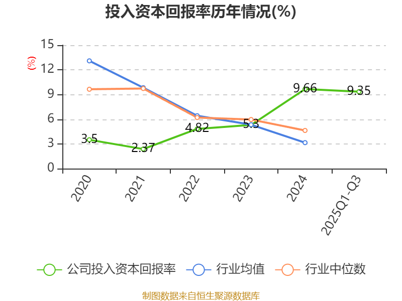 盈利能力方面, 2025年前三季度公司加权平均净资产收益率为14.07%,同比上升3.55个百分点。公司2025年前三季度投入资本回报率为9.35%,较上年同期上升2.79个百分点。