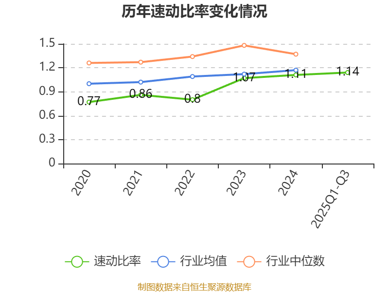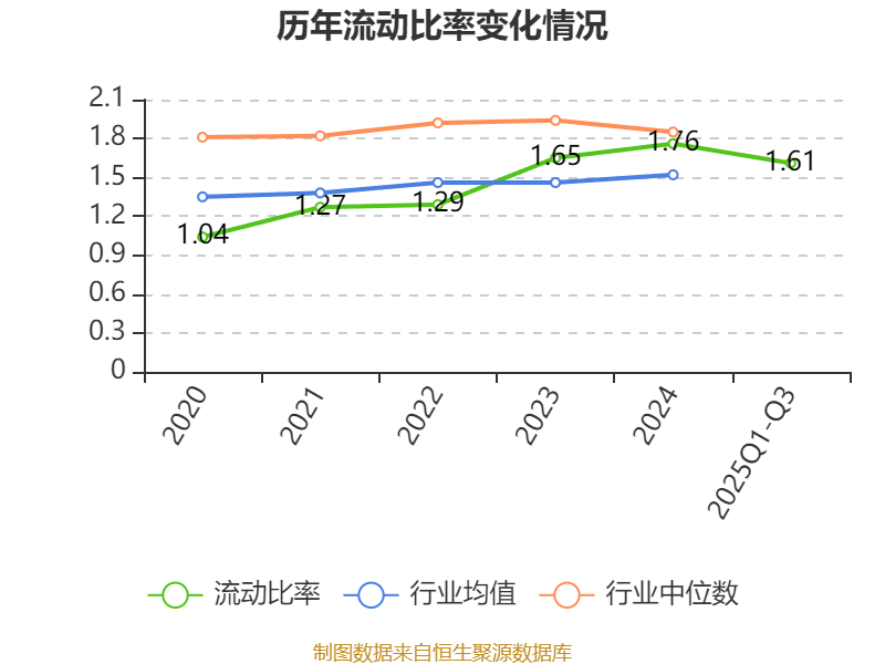 2025年前三季度,公司流动比率为1.61,速动比率为1.14。