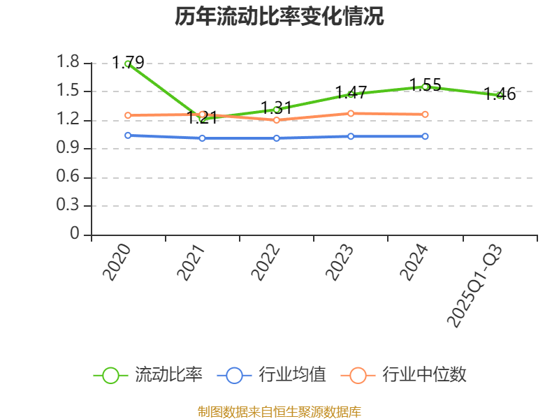 2025年前三季度,公司流动比率为1.46,速动比率为0.89。