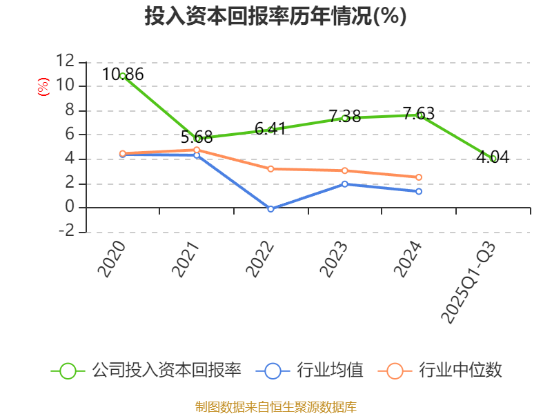 盈利能力方面, 2025年前三季度公司加权平均净资产收益率为4.51%,同比上升0.25个百分点。公司2025年前三季度投入资本回报率为4.04%,较上年同期上升0.42个百分点。