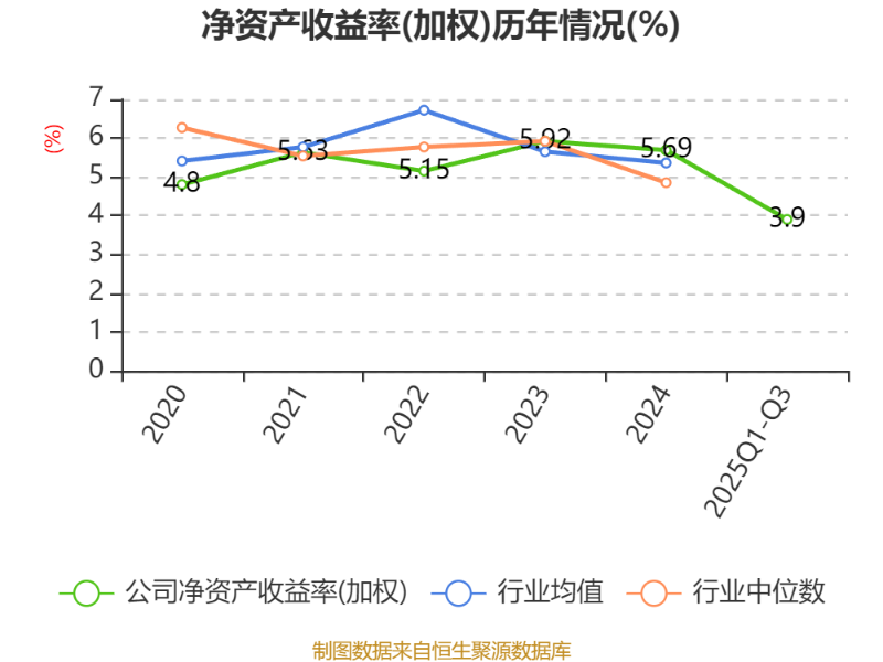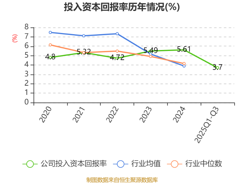 盈利能力方面, 2025年前三季度公司加权平均净资产收益率为3.9%,同比下降0.15个百分点。公司2025年前三季度投入资本回报率为3.7%,较上年同期下降0.29个百分点。