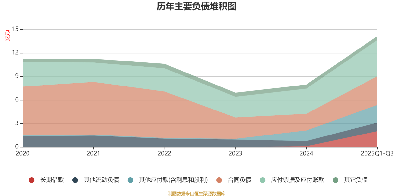 负债重大变化方面,截至2025年三季度末,公司长期借款较上年末增加1914.09%,占公司总资产比重上升7.75个百分点;合同负债较上年末增加71.76%,占公司总资产比重上升3.14个百分点;其他应付款(含利息和股利)较上年末增加69.2%,占公司总资产比重上升1.83个百分点;应付票据及应付账款较上年末增加43.81%,占公司总资产比重上升1.02个百分点。