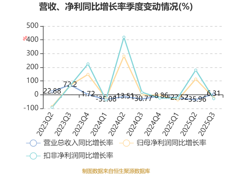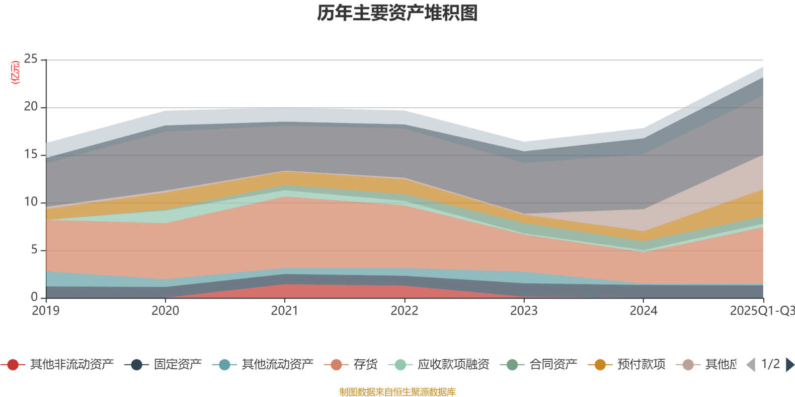 资产重大变化方面,截至2025年三季度末,公司应收票据及应收账款较上年末增加8.05%,占公司总资产比重下降6.68个百分点;存货较上年末增加79.42%,占公司总资产比重上升5.89个百分点;预付款项较上年末增加172.55%,占公司总资产比重上升5.84个百分点;固定资产较上年末减少2.48%,占公司总资产比重下降2.13个百分点。
