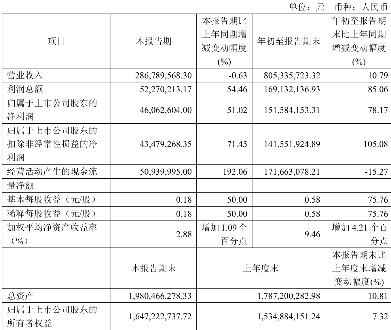 负债重大变化方面,截至2025年三季度末,公司短期借款较上年末增加62.52%,占公司总资产比重上升2.09个百分点;应付票据及应付账款较上年末增加55.12%,占公司总资产比重上升1.19个百分点;长期递延收益较上年末减少7.77%,占公司总资产比重下降0.46个百分点;交易性金融负债合计较上年末减少99.94%,占公司总资产比重下降0.25个百分点。