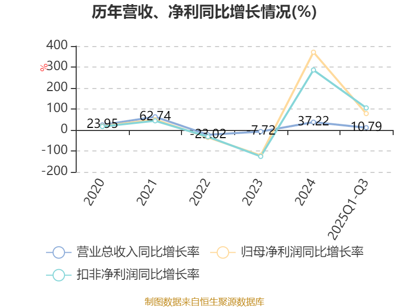 资产重大变化方面,截至2025年三季度末,公司长期股权投资较上年末增加11628.48%,占公司总资产比重上升3.66个百分点;固定资产较上年末增加3.66%,占公司总资产比重下降3.22个百分点;货币资金较上年末减少37.44%,占公司总资产比重下降2.37个百分点;其他非流动资产较上年末增加123.92%,占公司总资产比重上升1.8个百分点。