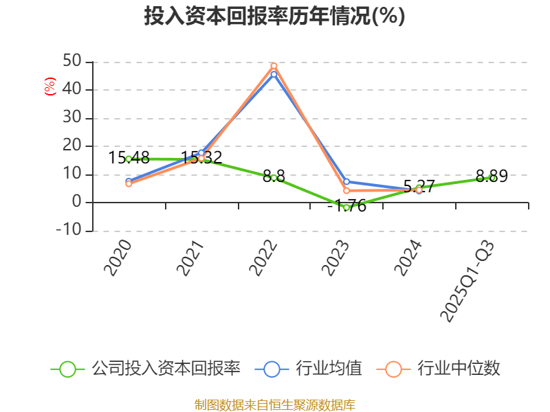 盈利能力方面, 2025年前三季度公司加权平均净资产收益率为9.46%,同比上升4.21个百分点。公司2025年前三季度投入资本回报率为8.89%,较上年同期上升3.62个百分点。