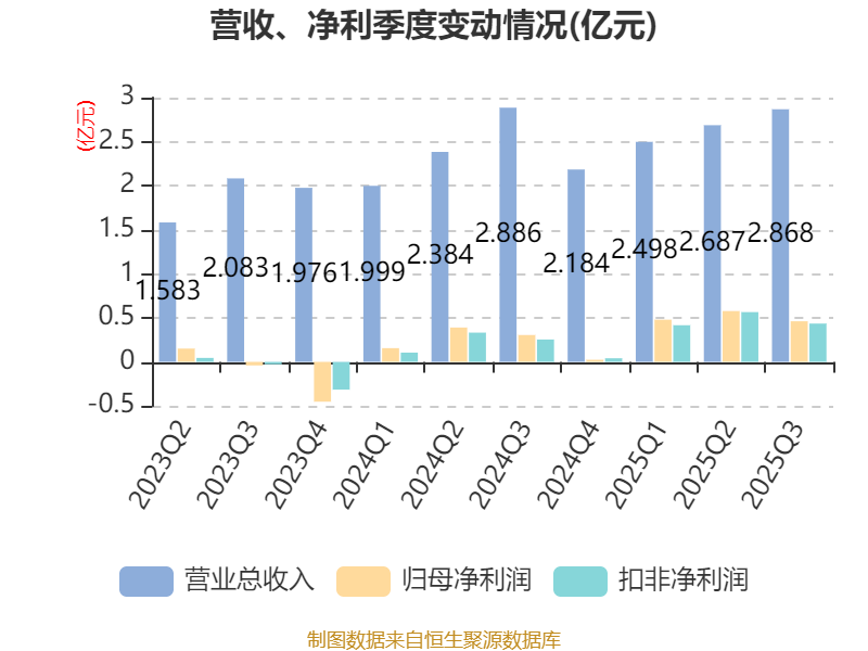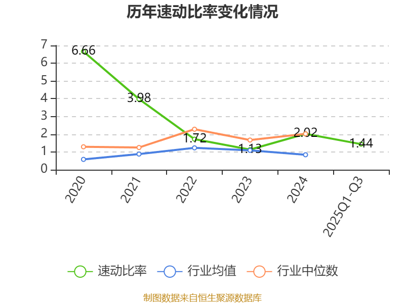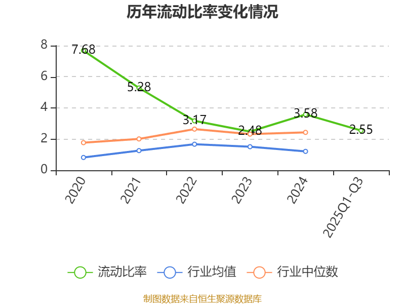 2025年前三季度,公司流动比率为2.55,速动比率为1.44。