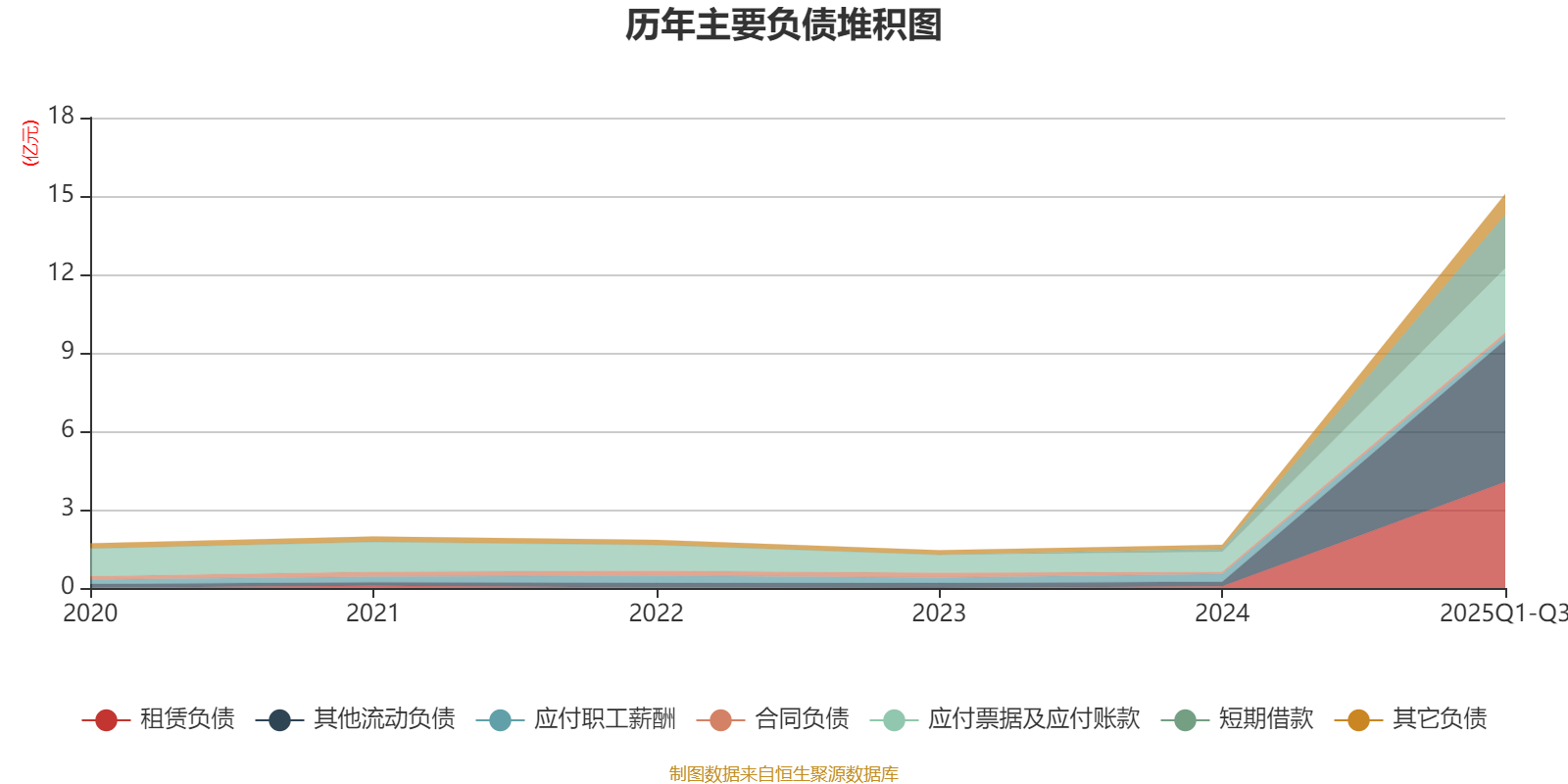 负债重大变化方面,截至2025年三季度末,公司其他流动负债较上年末增加3131.93%,占公司总资产比重上升21.61个百分点;租赁负债较上年末增加5823.52%,占公司总资产比重上升16.66个百分点;短期借款较上年末增加1634.92%,占公司总资产比重上升7.66个百分点;应付票据及应付账款较上年末增加223.54%,占公司总资产比重上升3.3个百分点。