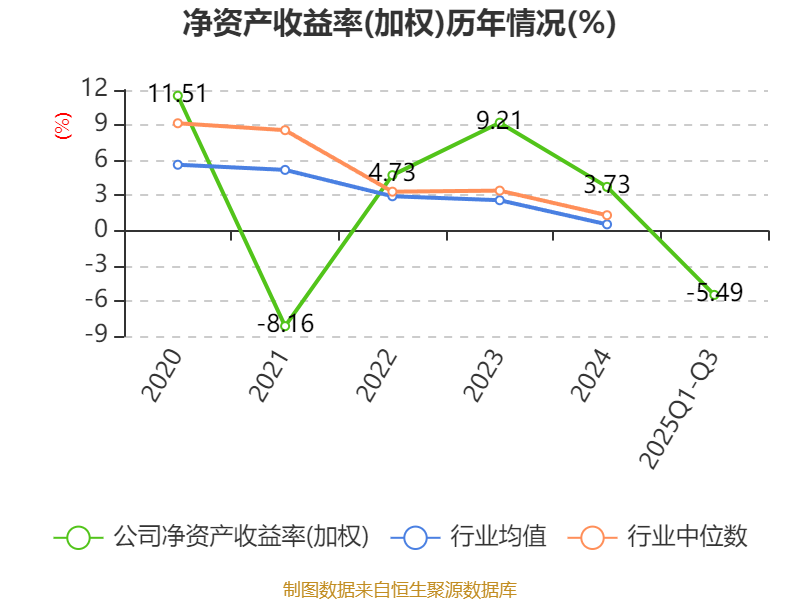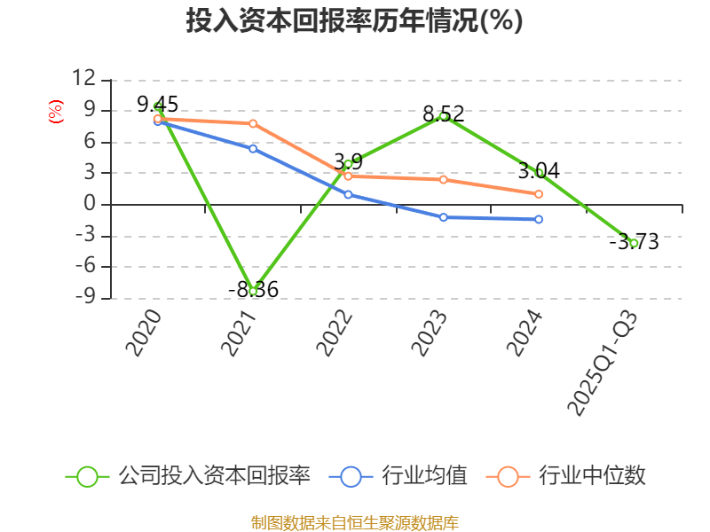 盈利能力方面, 2025年前三季度公司加权平均净资产收益率为-5.49%,同比下降0.7个百分点。公司2025年前三季度投入资本回报率为-3.73%,较上年同期上升1.07个百分点。