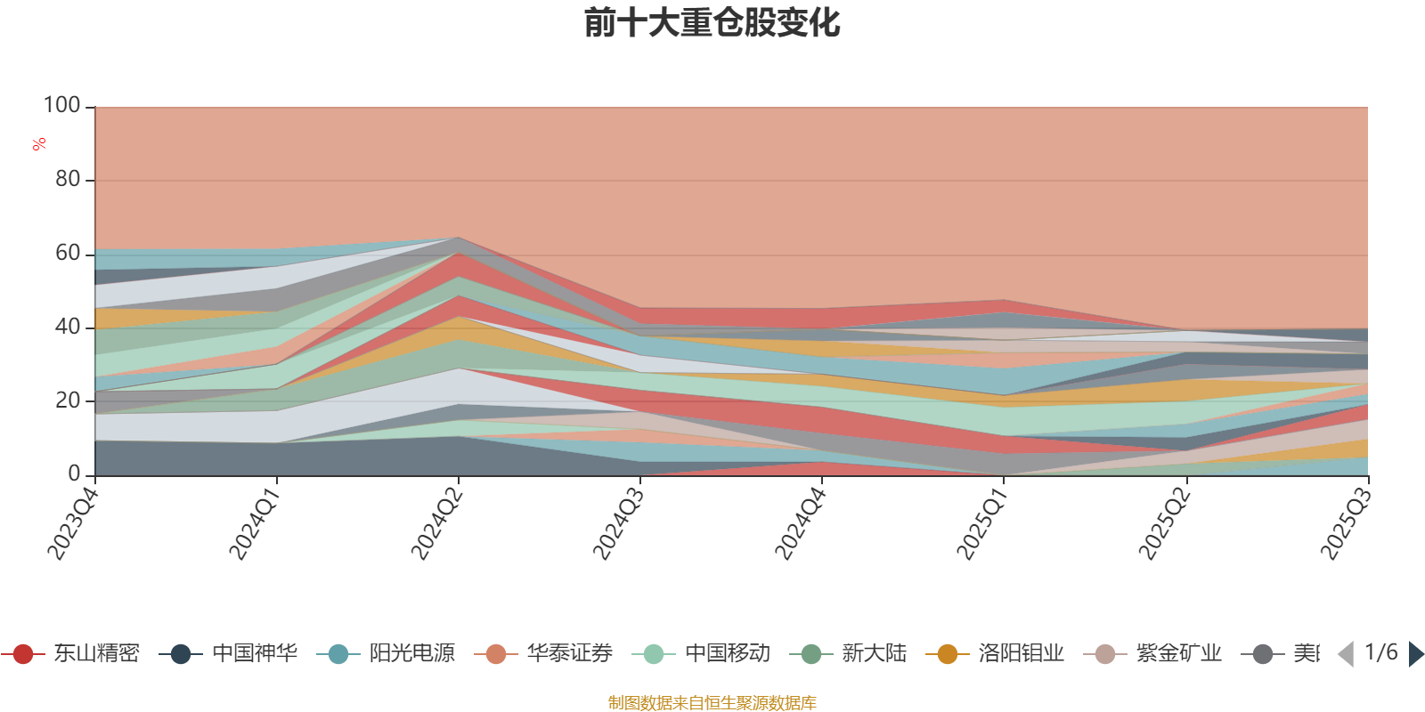 截至2025年三季度末,基金十大重仓股分别是紫金矿业、洛阳钼业、阳光电源、完美世界、宁德时代、新华保险、浙江荣泰、吉比特、厦钨新能、东方财富。