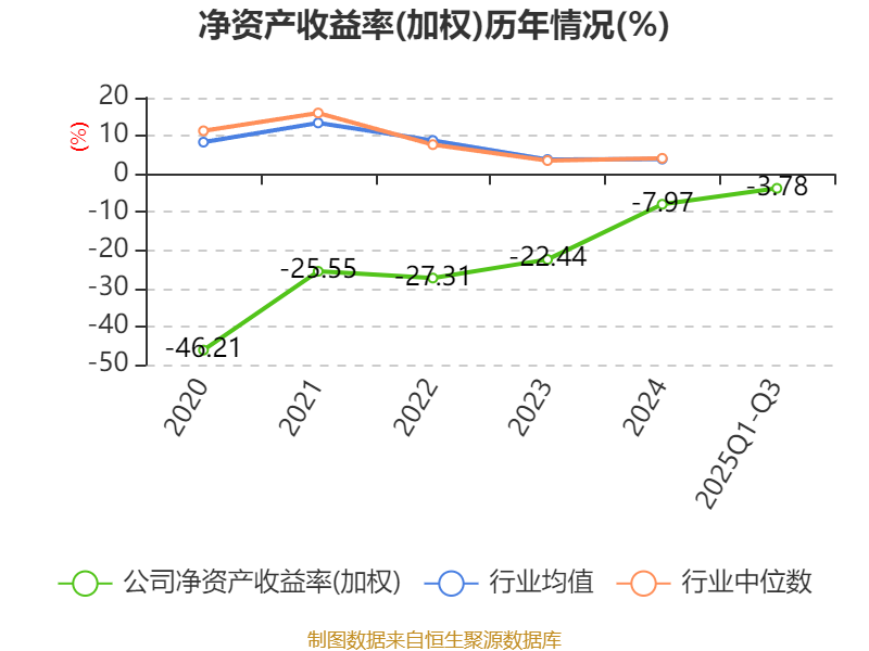 盈利能力方面, 2025年前三季度公司加权平均净资产收益率为-3.78%,同比上升1.85个百分点。公司2025年前三季度投入资本回报率为-4.79%,较上年同期上升0.47个百分点。