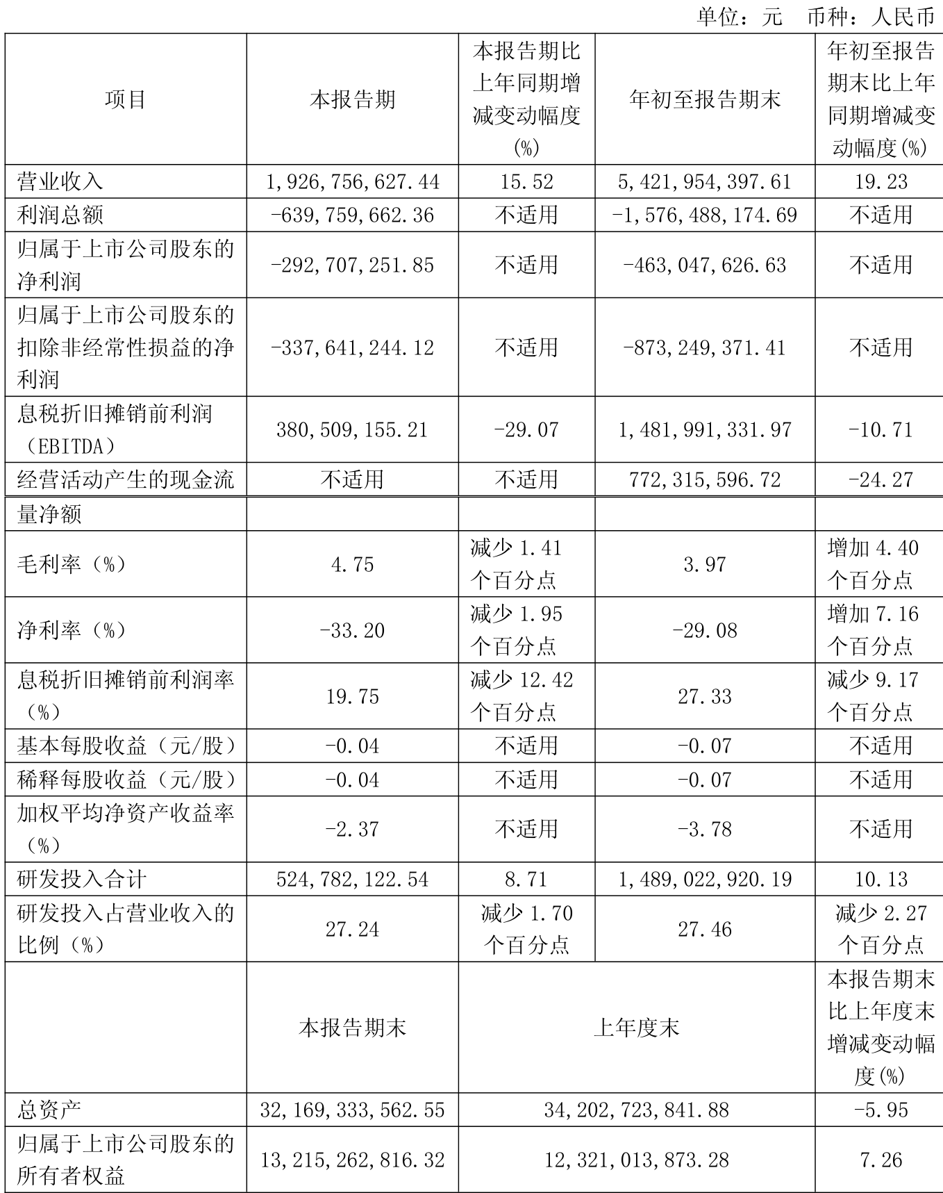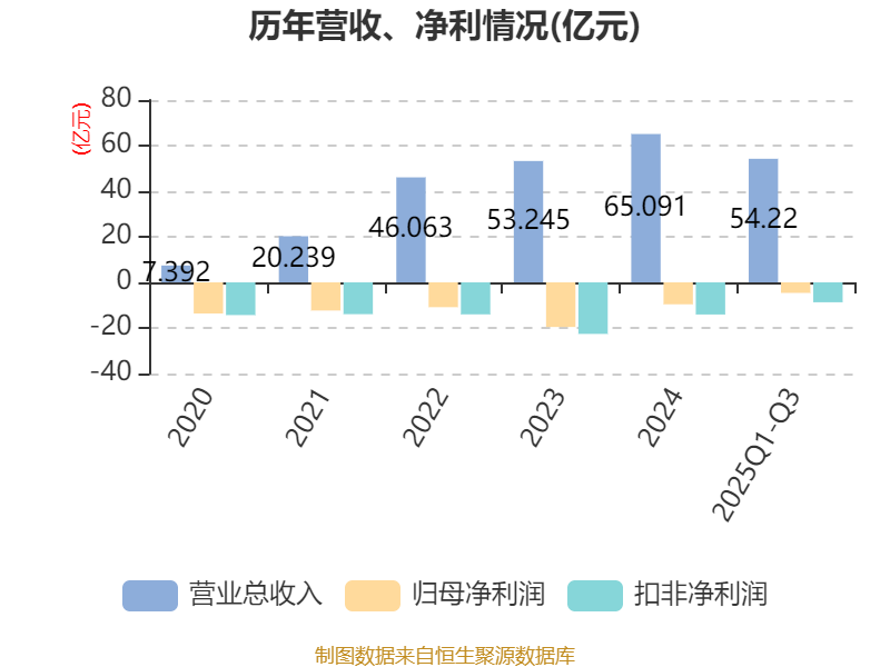 中证智能财讯芯联集成(688469)10月28日披露2025年第三季度报告。前三季度公司实现营业总收入54.22亿元,同比增长19.23%;归母净利润亏损4.63亿元,上年同期亏损6.84亿元;扣非净利润亏损8.73亿元,上年同期亏损10.74亿元;经营活动产生的现金流量净额为7.72亿元,同比下降24.27%;报告期内,芯联集成基本每股收益为-0.07元,加权平均净资产收益率为-3.78%。