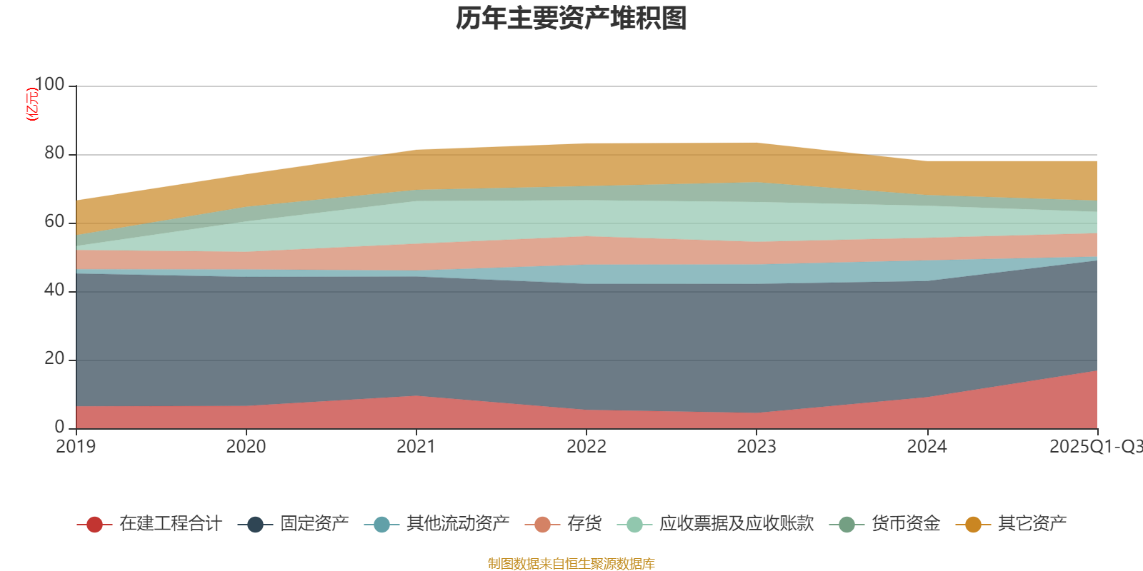 资产重大变化方面,截至2025年三季度末,公司在建工程合计较上年末增加85.16%,占公司总资产比重上升9.92个百分点;其他流动资产较上年末减少80.92%,占公司总资产比重下降6.27个百分点;应收票据及应收账款较上年末减少33.38%,占公司总资产比重下降4.01个百分点;固定资产较上年末减少5.12%,占公司总资产比重下降2.22个百分点。