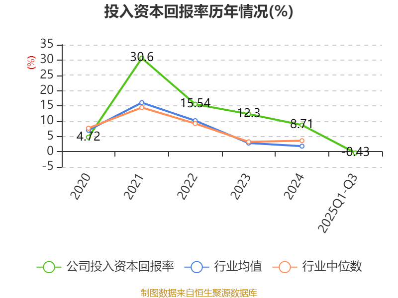 盈利能力方面, 2025年前三季度公司加权平均净资产收益率为-0.15%,同比下降9.58个百分点。公司2025年前三季度投入资本回报率为-0.43%,较上年同期下降9.29个百分点。
