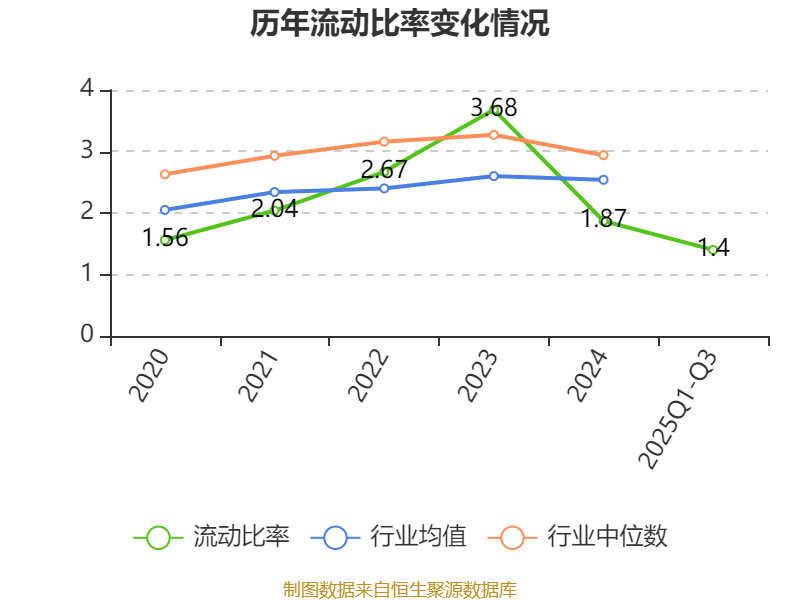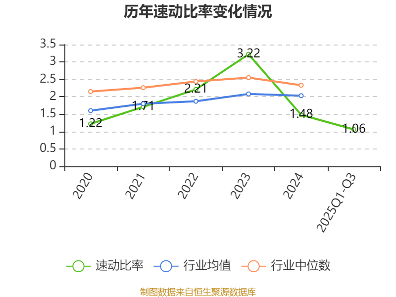 2025年前三季度,公司流动比率为1.4,速动比率为1.06。