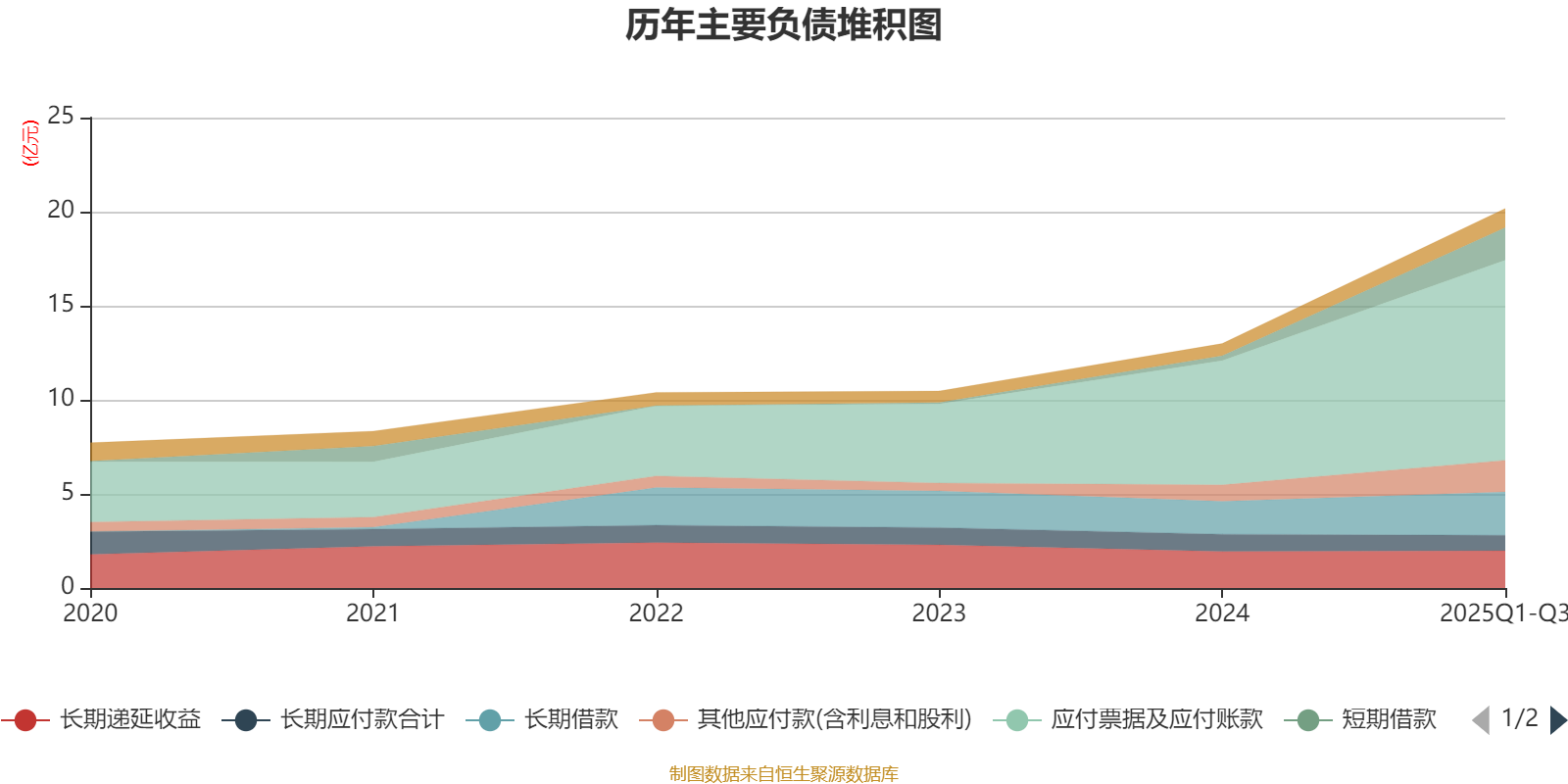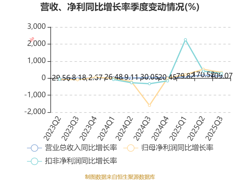 负债重大变化方面,截至2025年三季度末,公司应付票据及应付账款较上年末增加61%,占公司总资产比重上升4.89个百分点;短期借款较上年末增加574.52%,占公司总资产比重上升3.73个百分点;长期递延收益较上年末增加2.29%,占公司总资产比重下降1.64个百分点;其他应付款(含利息和股利)较上年末增加93.35%,占公司总资产比重上升1.41个百分点。