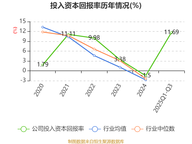 盈利能力方面, 2025年前三季度公司加权平均净资产收益率为14.19%,同比上升17.48个百分点。公司2025年前三季度投入资本回报率为11.69%,较上年同期上升15.26个百分点。