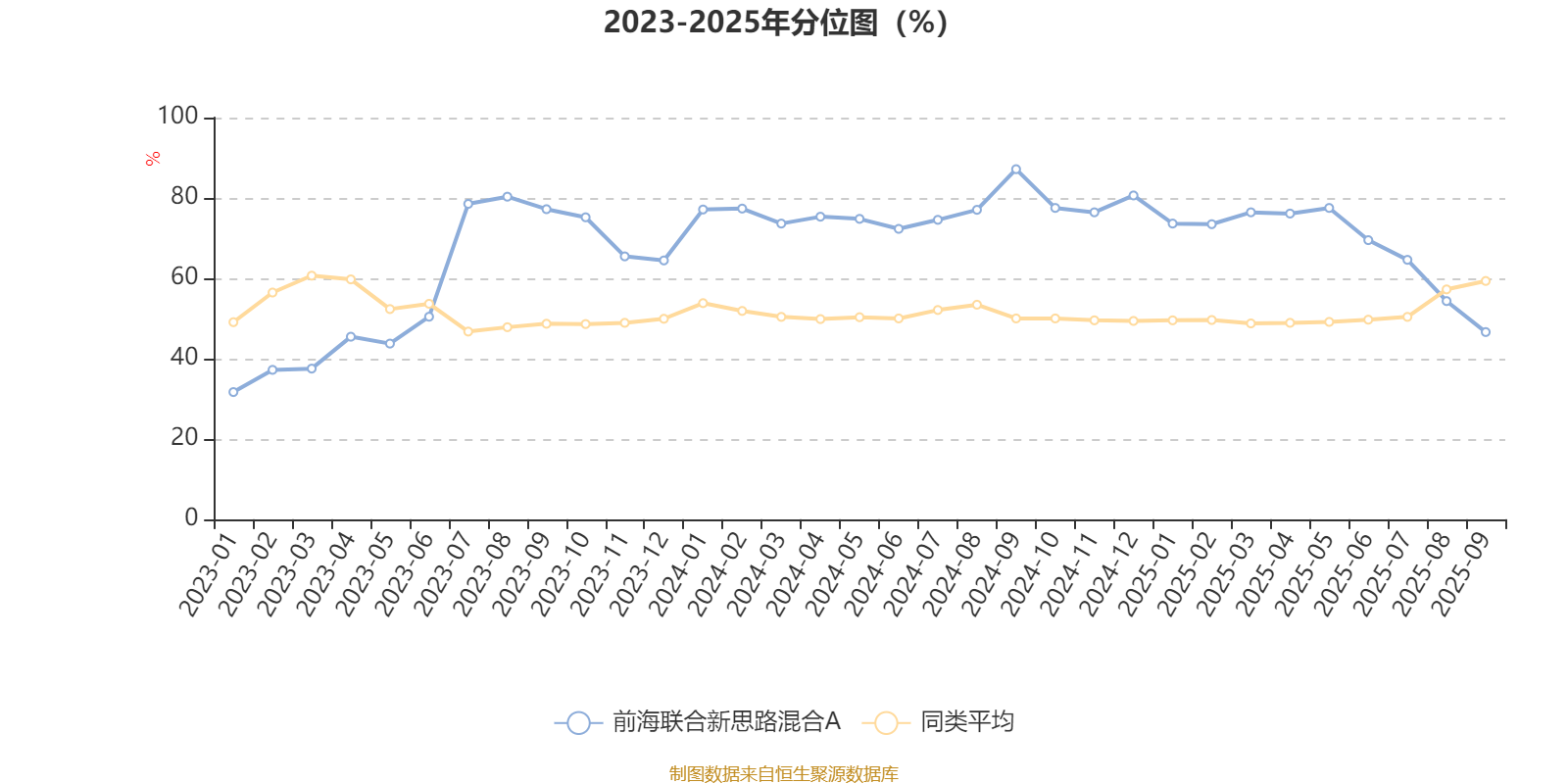 通过所选区间该基金净值增长率分位图,可以观察该基金与同类基金业绩比较情况。图为坐标原点到区间内某时点的净值增长率在同类基金中的分位数。