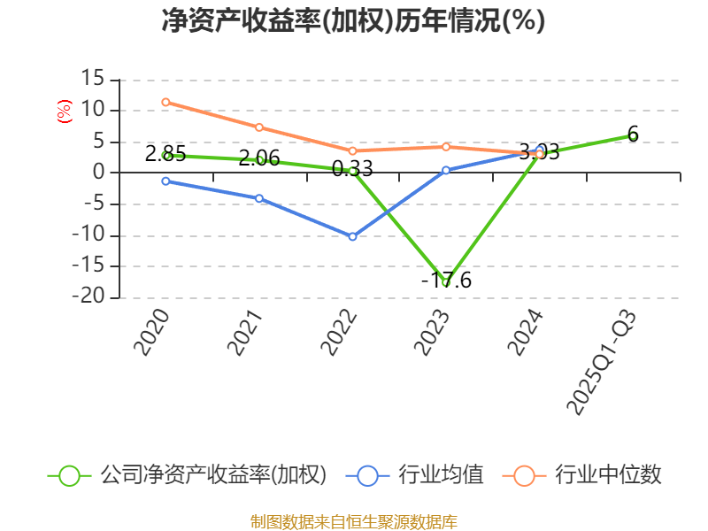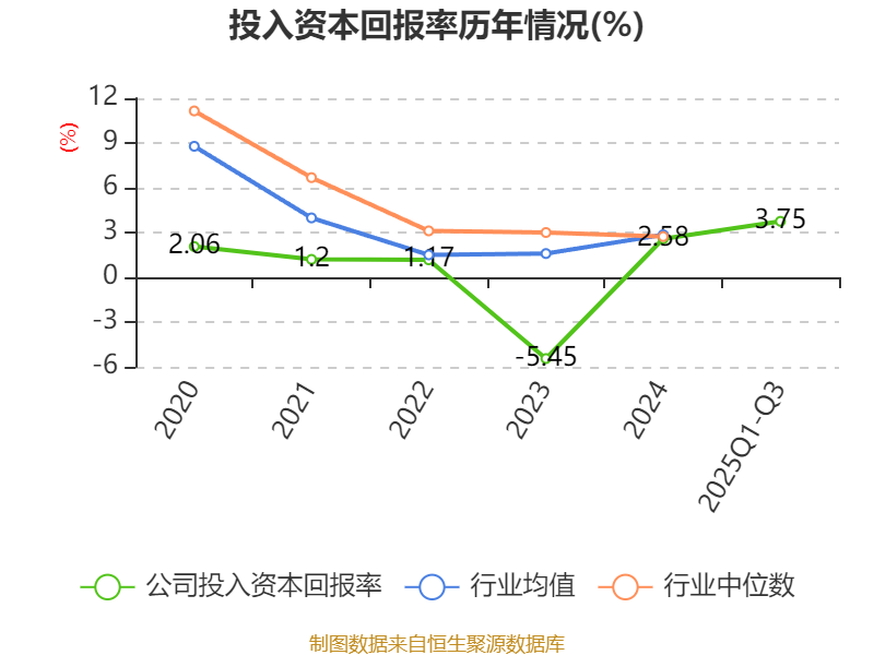 盈利能力方面, 2025年前三季度公司加权平均净资产收益率为6%,同比上升10.67个百分点。公司2025年前三季度投入资本回报率为3.75%,较上年同期上升4.1个百分点。