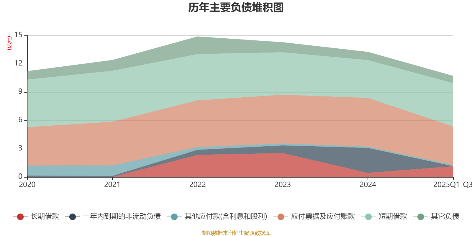 负债重大变化方面,截至2025年三季度末,公司一年内到期的非流动负债较上年末减少99.65%,占公司总资产比重下降13.98个百分点;短期借款较上年末增加14.73%,占公司总资产比重上升6.95个百分点;长期借款较上年末增加159.35%,占公司总资产比重上升4.67个百分点;应付票据及应付账款较上年末减少21.24%,占公司总资产比重下降2.47个百分点。