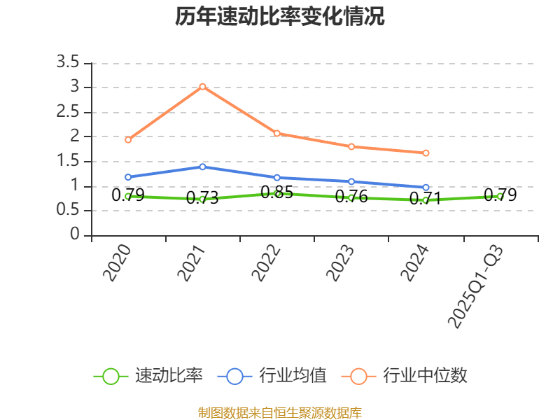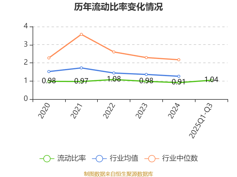 2025年前三季度,公司流动比率为1.04,速动比率为0.79。