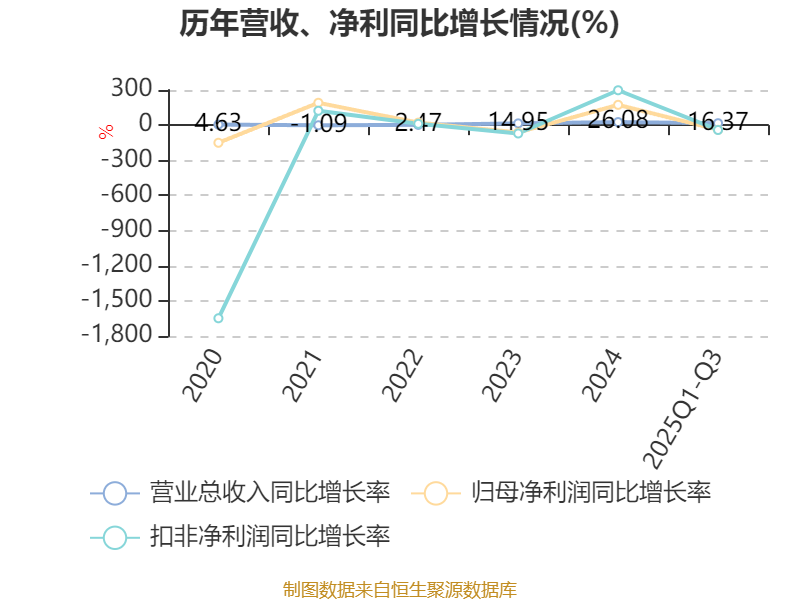 负债重大变化方面,截至2025年三季度末,公司短期借款较上年末增加25.57%,占公司总资产比重上升1.76个百分点;应付票据及应付账款较上年末增加1.46%,占公司总资产比重下降0.4个百分点;应付职工薪酬较上年末减少16.65%,占公司总资产比重下降0.38个百分点;应交税费较上年末增加134.92%,占公司总资产比重上升0.18个百分点。
