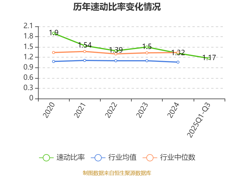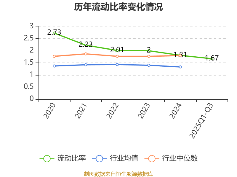 2025年前三季度,公司流动比率为1.67,速动比率为1.17。