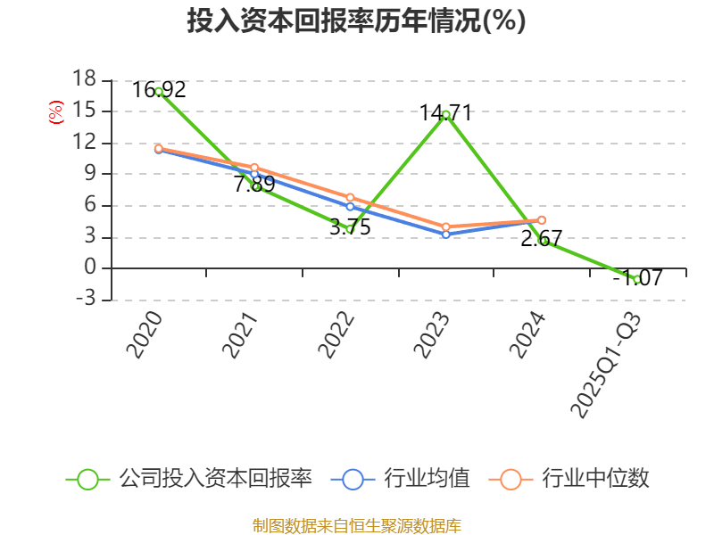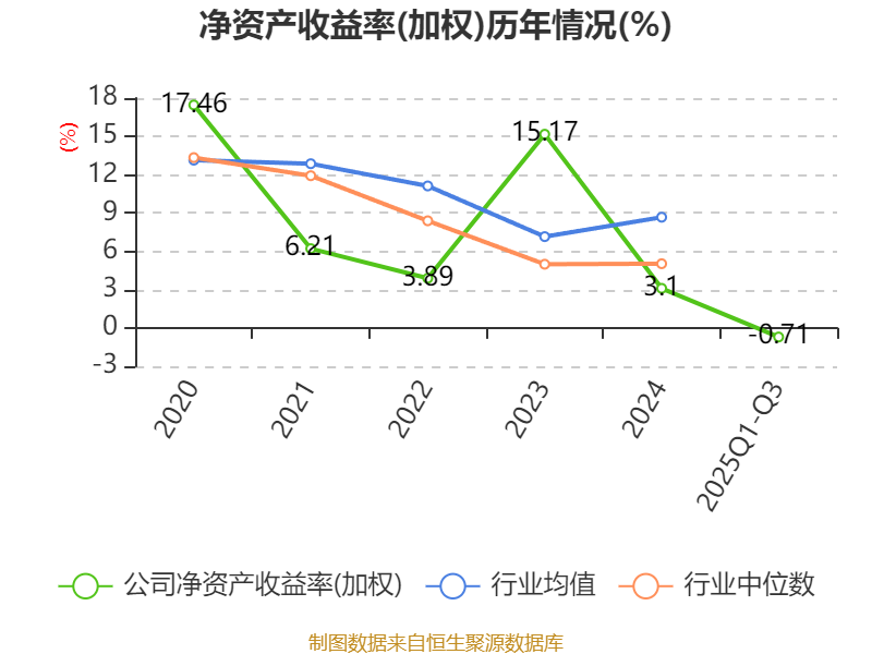 盈利能力方面, 2025年前三季度公司加权平均净资产收益率为-0.71%,同比下降3.46个百分点。公司2025年前三季度投入资本回报率为-1.07%,较上年同期下降3.44个百分点。