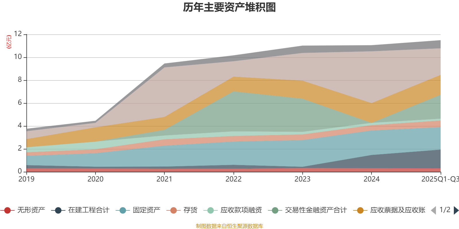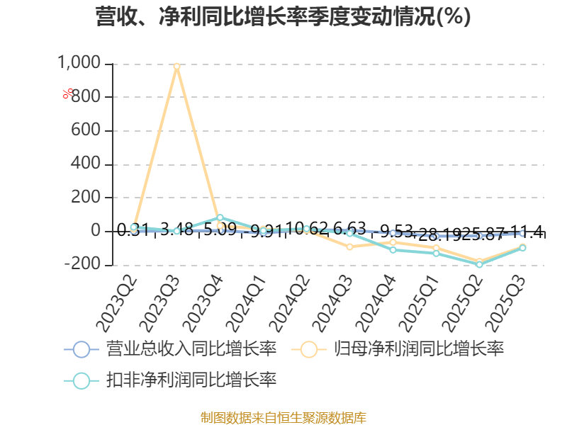 资产重大变化方面,截至2025年三季度末,公司货币资金较上年末减少48.74%,占公司总资产比重下降20.73个百分点;交易性金融资产合计占公司总资产的18.19%,上年末为0;在建工程合计较上年末增加41.59%,占公司总资产比重上升3.78个百分点;固定资产较上年末减少8.3%,占公司总资产比重下降2.29个百分点。