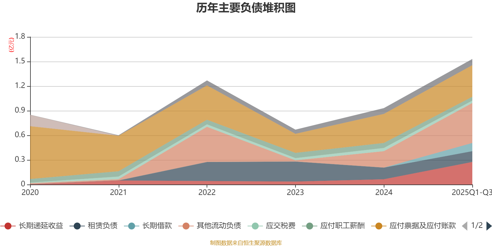 负债重大变化方面,截至2025年三季度末,公司其他流动负债较上年末增加143.42%,占公司总资产比重上升2.44个百分点;长期递延收益较上年末增加330.23%,占公司总资产比重上升1.81个百分点;长期借款占公司总资产的0.87%,上年末为0;应付职工薪酬较上年末减少23.63%,占公司总资产比重下降0.15个百分点。