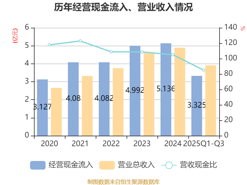 2025年前三季度,公司流动比率为3.78,速动比率为3.59。