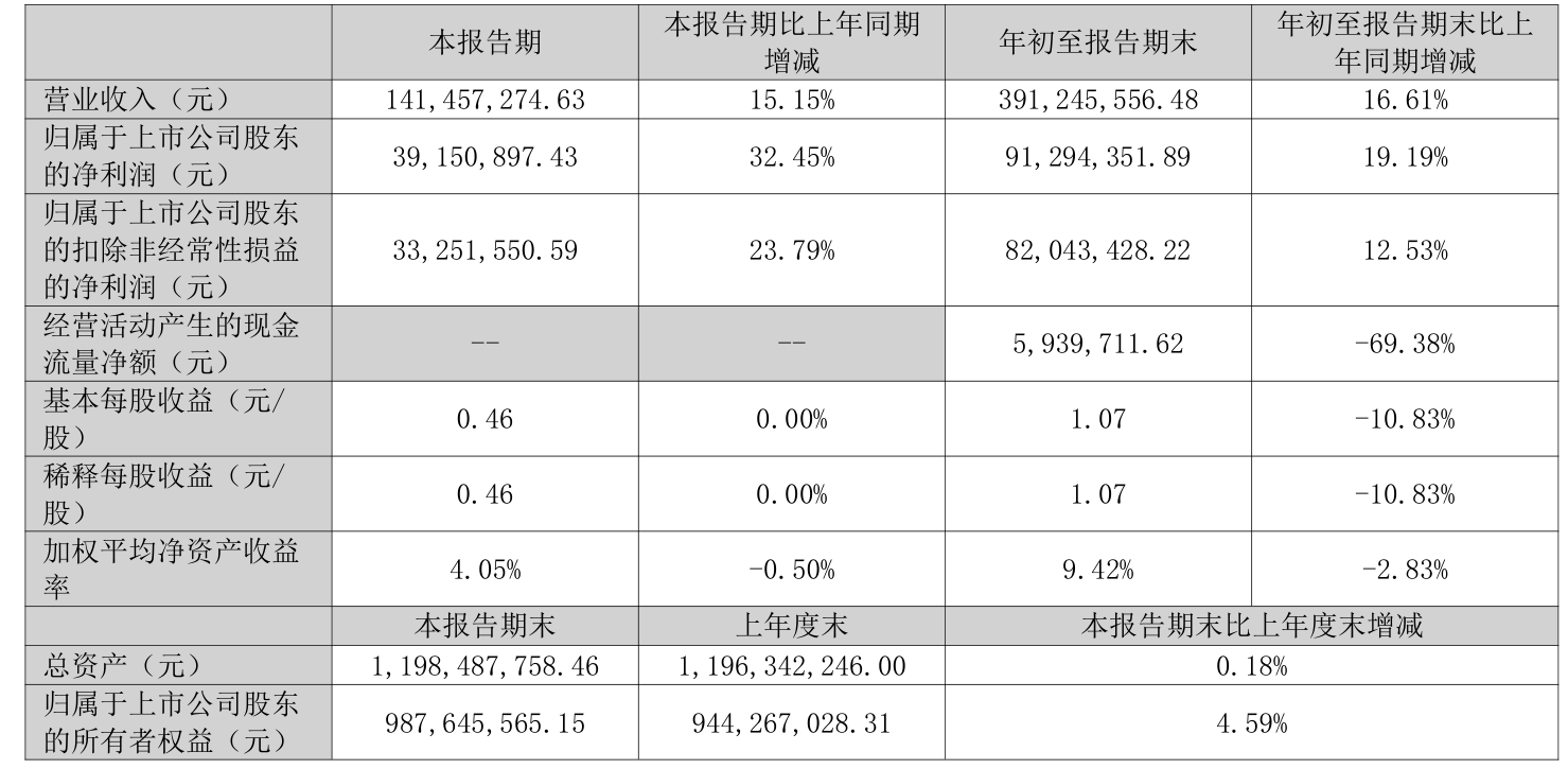 中证智能财讯托普云农(301556)10月28日披露2025年第三季度报告。前三季度公司实现营业总收入3.91亿元,同比增长16.61%;归母净利润9129.44万元,同比增长19.19%;扣非净利润8204.34万元,同比增长12.53%;经营活动产生的现金流量净额为593.97万元,同比下降69.38%;报告期内,托普云农基本每股收益为1.07元,加权平均净资产收益率为9.42%。
