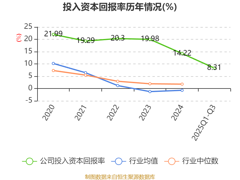 盈利能力方面, 2025年前三季度公司加权平均净资产收益率为9.42%,同比下降2.83个百分点。公司2025年前三季度投入资本回报率为8.31%,较上年同期下降2.13个百分点。