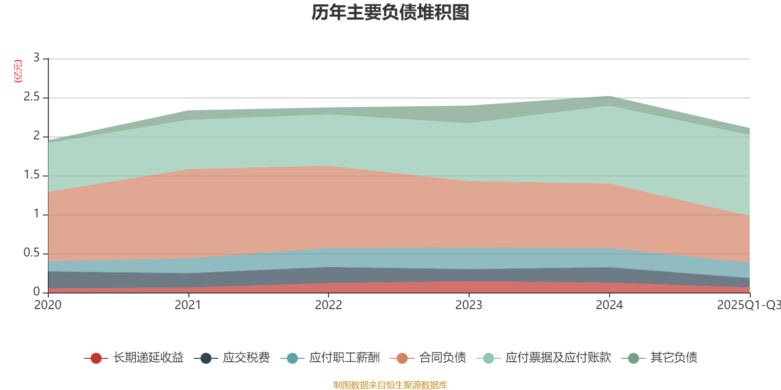 负债重大变化方面,截至2025年三季度末,公司合同负债较上年末减少27.02%,占公司总资产比重下降1.87个百分点;应交税费较上年末减少39.86%,占公司总资产比重下降0.66个百分点;长期递延收益较上年末减少47.36%,占公司总资产比重下降0.5个百分点;应付职工薪酬较上年末减少21.09%,占公司总资产比重下降0.44个百分点。
