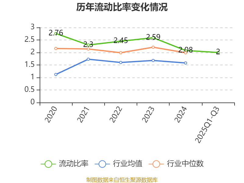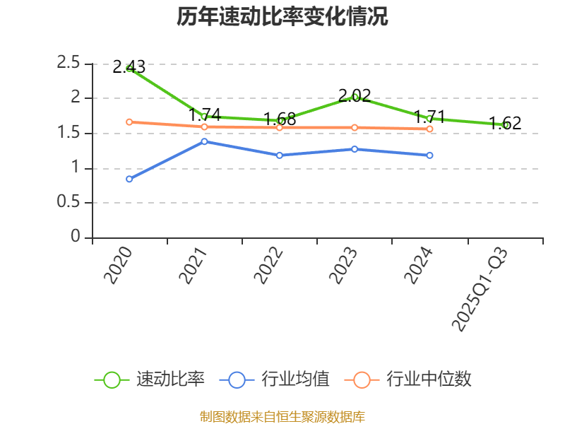 2025年前三季度,公司流动比率为2,速动比率为1.62。