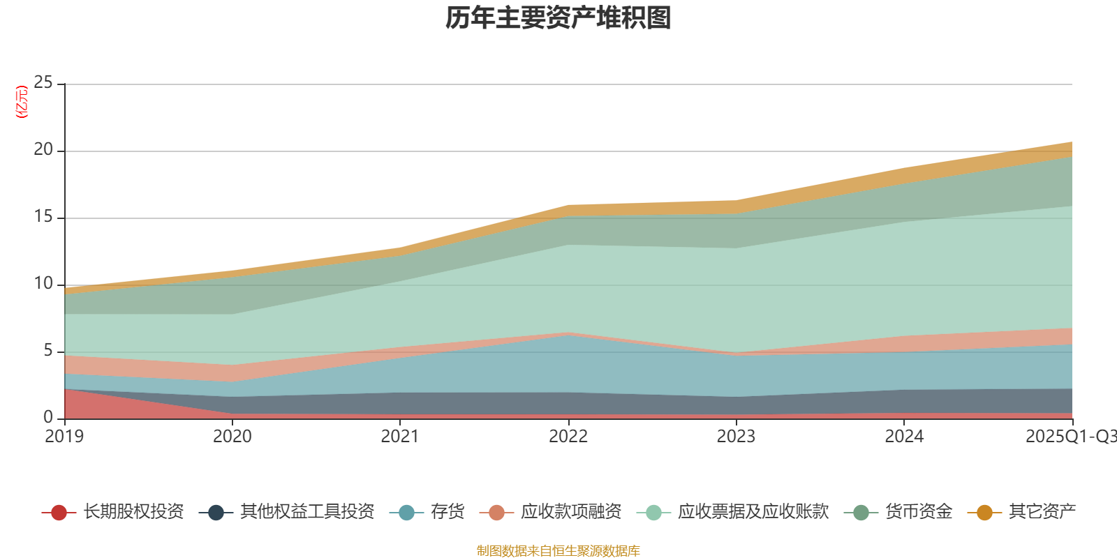 资产重大变化方面,截至2025年三季度末,公司货币资金较上年末增加28.83%,占公司总资产比重上升2.54个百分点;应收票据及应收账款较上年末增加6.93%,占公司总资产比重下降1.46个百分点;存货较上年末增加17.63%,占公司总资产比重上升0.97个百分点;应收款项融资较上年末增加1.64%,占公司总资产比重下降0.52个百分点。