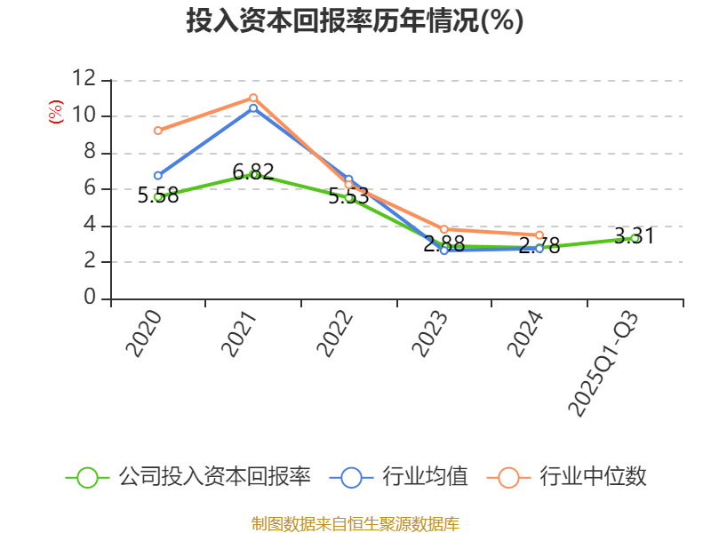 盈利能力方面, 2025年前三季度公司加权平均净资产收益率为4.09%,同比上升0.62个百分点。公司2025年前三季度投入资本回报率为3.31%,较上年同期上升0.37个百分点。
