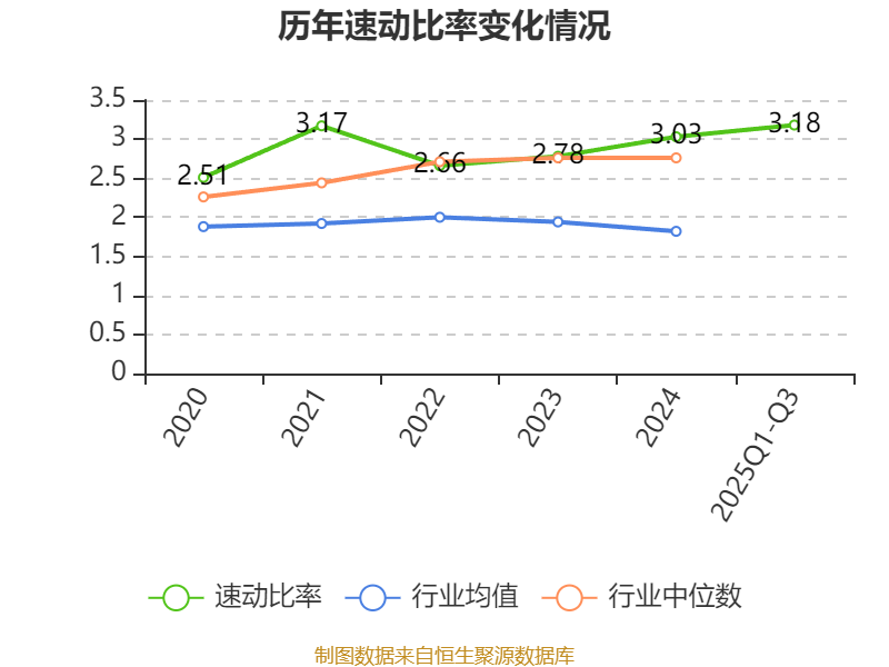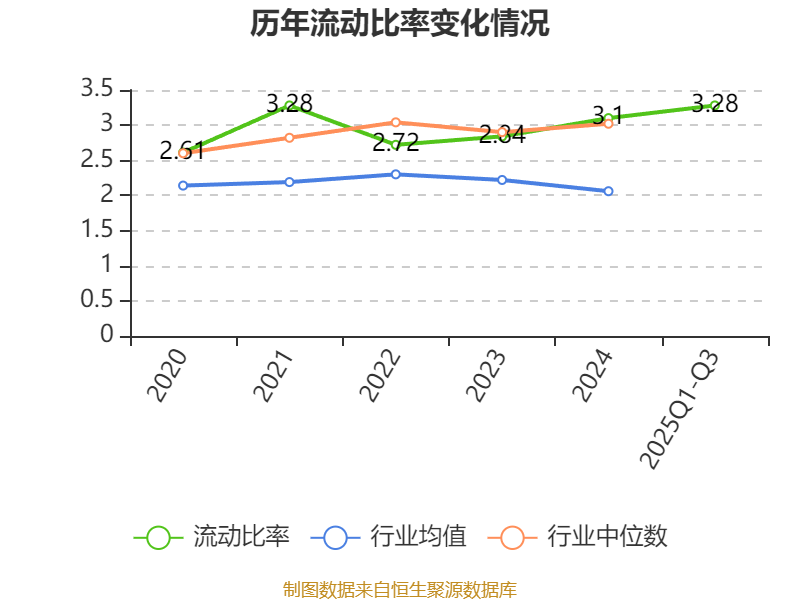 2025年前三季度,公司流动比率为3.28,速动比率为3.18。