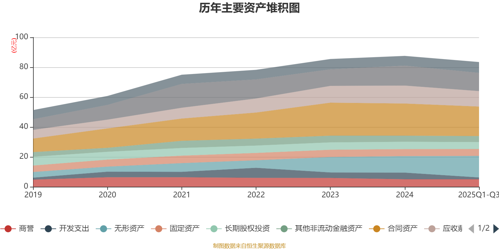 资产重大变化方面,截至2025年三季度末,公司无形资产较上年末增加30.78%,占公司总资产比重上升4.7个百分点;开发支出较上年末减少73.12%,占公司总资产比重下降3.65个百分点;应收票据及应收账款较上年末减少13.9%,占公司总资产比重下降1.33个百分点;递延所得税资产较上年末增加50.87%,占公司总资产比重上升1.29个百分点。