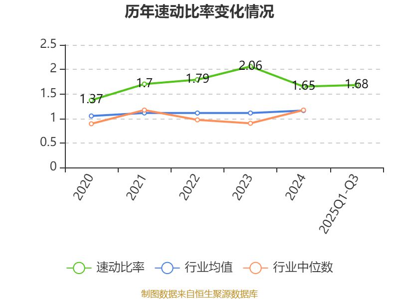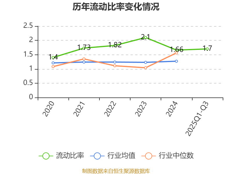 2025年前三季度,公司流动比率为1.7,速动比率为1.68。