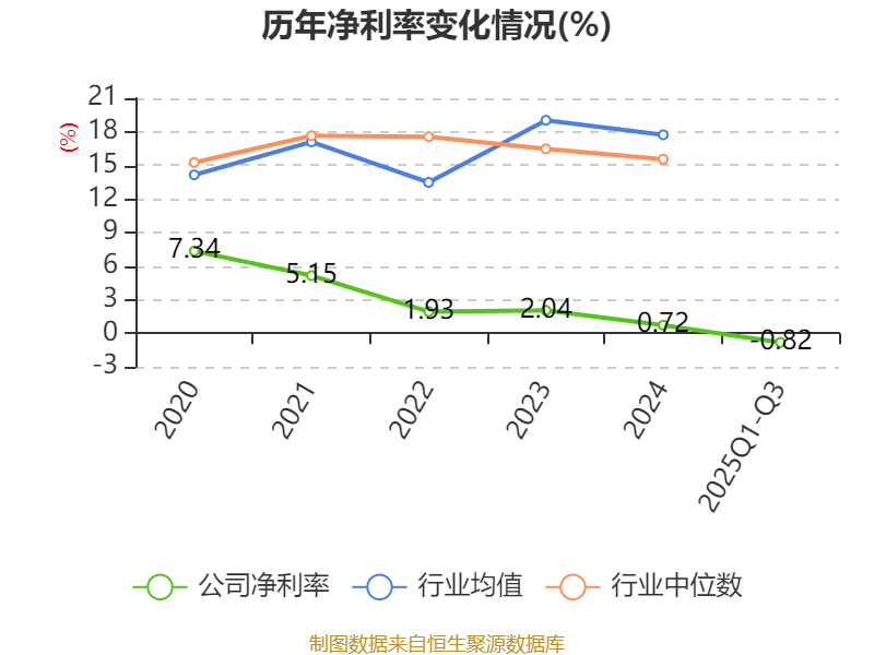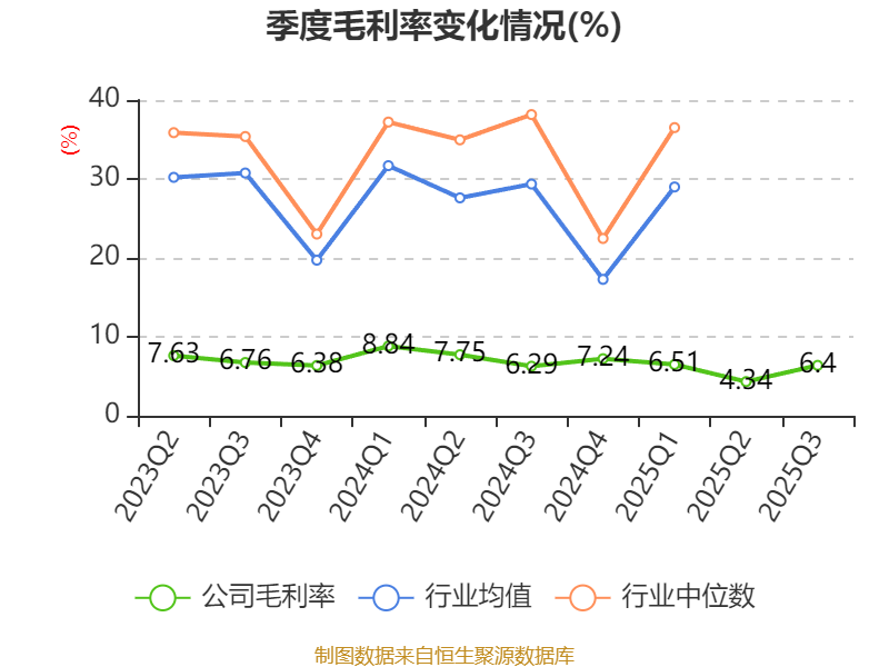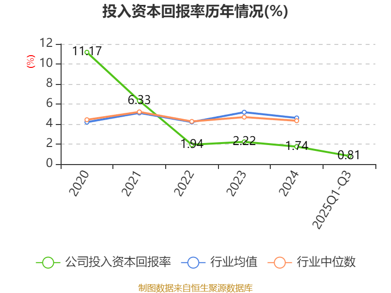 盈利能力方面, 2025年前三季度公司加权平均净资产收益率为-1.39%,同比下降2.74个百分点。公司2025年前三季度投入资本回报率为0.81%,较上年同期下降0.89个百分点。
